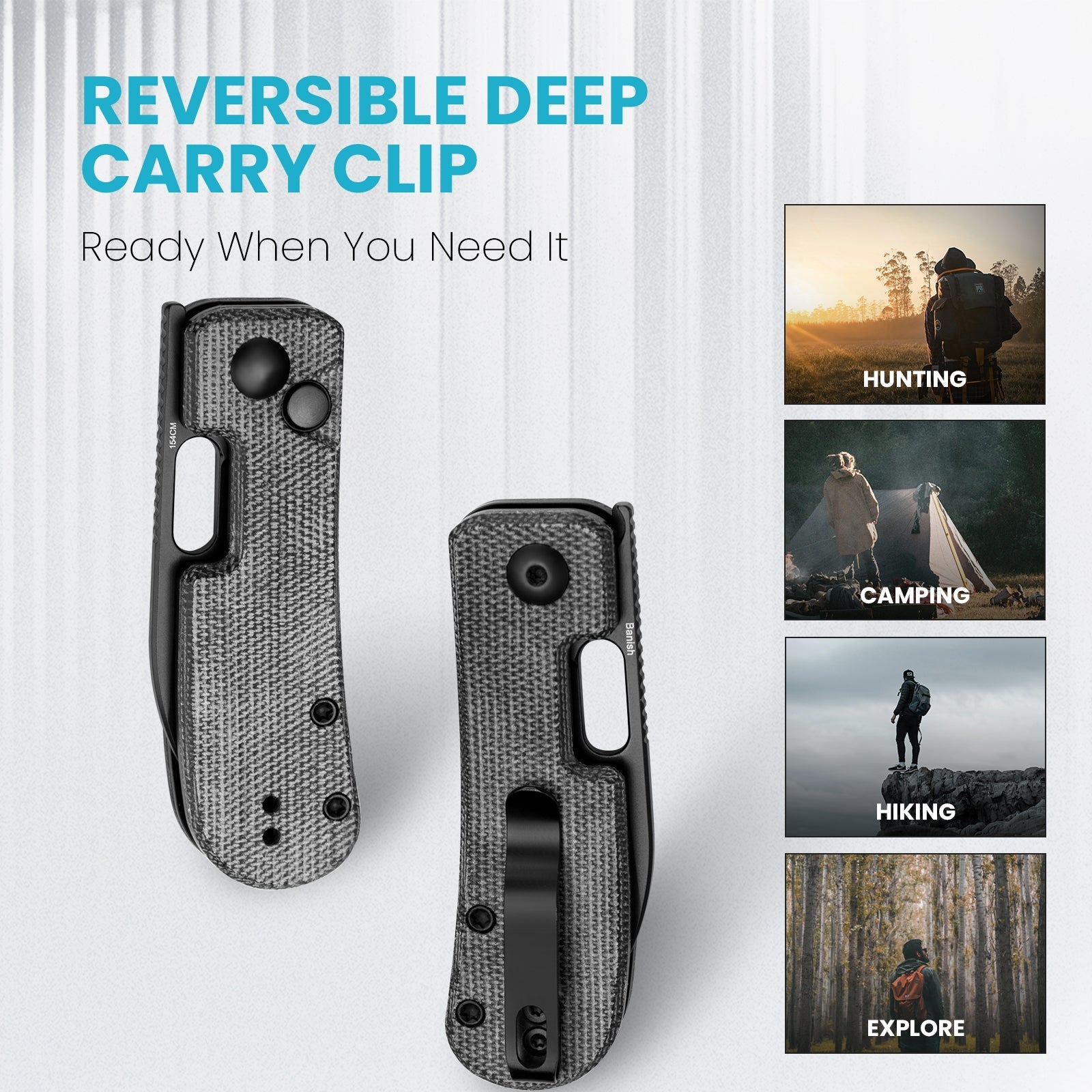 Compact and exquisitely crafted, the Banish is an exceptional everyday carry (EDC) knife that weighs a mere 63.5g. It excels in both form and function. The bilateral Deep Carry design accommodates left-handed individuals with ease. Its thumb hole allows for quick and convenient opening, while the almost concealed front flipper cleverly saves precious pocket space.